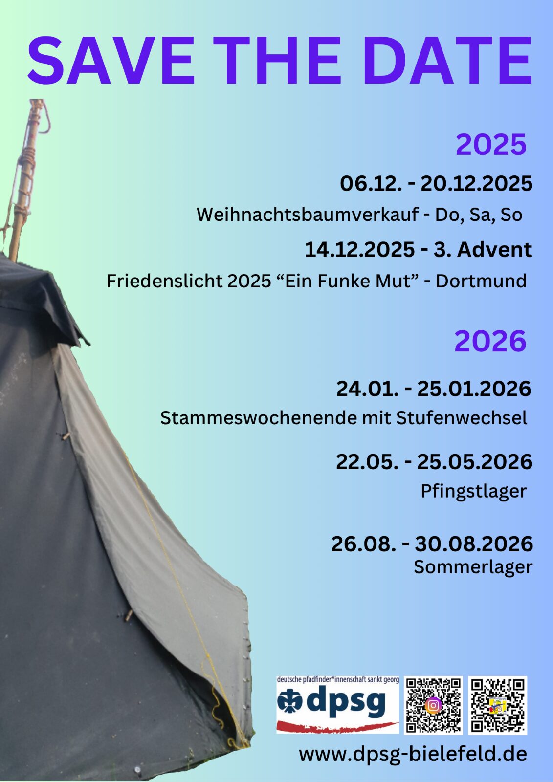 Alle aktuellen Infos, zu den anstehenden Terminen, findest du auch auf dieser Seite: dpsg-bielefeld.de/termine/